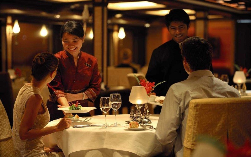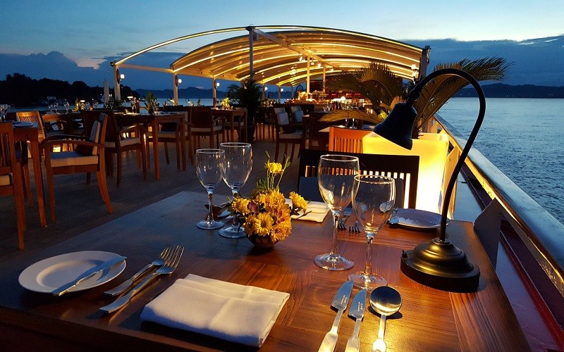 This evening, a gourmet dinner is served on board.