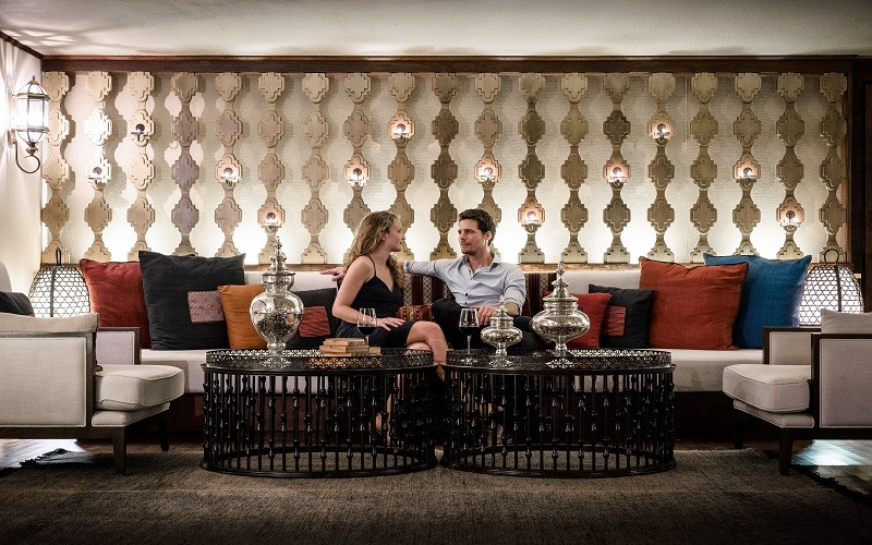 Tonight’s dinner is set on a sandbank illuminated by the candles.