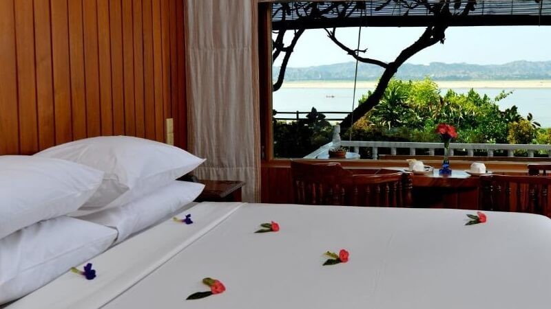 "We greatly enjoyed our four-night stay here in a Deluxe River View room. I can't really fault anything. The location of the hotel was perfect being located in Old Bagan itself and it was close to a lot of temples. Our room was spacious and comfortable with everything you would expect to be provided - the view out onto the Irrawaddy River from our veranda was breathtaking with amazing sunsets. The hotel grounds were beautiful in a garden setting. The restaurant had a beautiful view of the river and set under a massive tree - which when lit up at night was quite magical. The swimming pool was fine and good place to relax and cool off after a day of exploring. The staff were excellent, friendly and helpful - the restaurant maitre d' in particular was outstanding he worked very hard, nothing was too much trouble and he was extremely helpful. The hotel offered E-bike rental which was very convenient and we took advantage of this every day - 5,000 Kyat for four hours, 9,000 Kyat for all day. One tip - the kitchen here struggles to cope with a large volume of diners, so best to reserve a table in advance and pre-order your food and it is ready for you at the requested time."