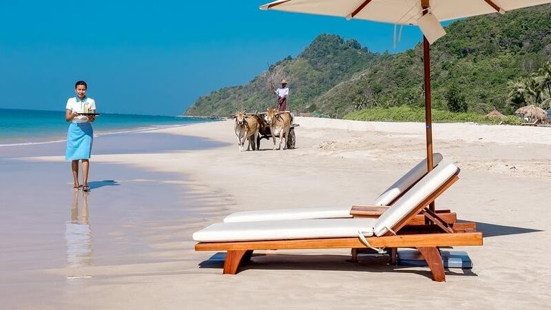 "We stayed at the end of October, beginning of November and we had just the most relaxing time. I have genuinely never seen a beach so naturally pristine and quiet - I don't know if it was the time of year or what but if we saw 2 other people on the beach at the same time as us that was rare. And it's not even a private beach! You could walk up and down the beach for miles if you wanted to, and its completely beautiful. We had a few days where the waves were quite strong so it wasn't great for anyone who isn't a strong swimmer but again I think that could have just been the time of year as it doesn't look like that's normally the case. Equally, there was hardly anyone else at the resort when we stayed either as it was the very beginning of the season for them I think, which made it feel like a very exclusive resort, just us and about 10 other people I'd say. The pool was spectacular, really comfy loungers, and the pool itself was clean and inviting - the perfect temperature for cooling off without being too cold. We were able to order food and drinks by the pool too making for a completely relaxing (and lazy!) holiday, just what we needed. And wow those beach sunsets watched from the pool were out of this world! Food and drink was excellent, really couldn't fault the quality at all, superb. And the menu was quite extensive with a mix of western and asian foods, and portions were really generous. Food isn't anywhere near as cheap here as is typical of Myanmar and other places we stayed, it's more like UK prices but you expect that from a resort as good as this. The only thing I would say is that it did take a while to come each time after ordering, but that's really not a big deal. The room was large, spacious and modern, and kept very clean for the duration of our stay. Great comfy big bed and the bathroom was also very new and well appointed. The rooms aren't very far from the pool at all, so no long walk to and from which is great. Oh and a lovely touch, the minibar contained a selection of soft drinks that were all complimentary and re-stocked each day - how wonderful! There doesn't seem to be much to do outside of the resort (though that didn't bother us as we were just there to relax) but those that want more things to do should be aware of that. Overall we have absolutely no complaints, we thought it was fantastic value for money for such a beautiful hotel and would recommend this fantastic resort to anyone - it really does live up to the beautiful pictures. We would offer the resort a few pieces of advice though just to take it that one step closer to absolutely perfect: - Please stop using plastic straws in drinks and instead switch to paper straws or better re-usable bamboo straws or no straws at all to be more environmentally friendly. - If someone orders room service or brings drinks back to their room, please ensure the empty plates and glasses are removed by housekeeping when they clean the room the next morning. - The physical menu in the restaurant is currently just pieces of printed paper taped together at the edge which doesn't reflect the sophistication of the resort or the fantastic food itself. It also isn't very practical around the pool for drips and splashes getting it wet etc. I recommend that you upgrade the menus to sit in a proper menu-book-type-thing to look a little more professional (like the books with the hotel info sat in them in the rooms). Also, it would be helpful if each person at the table was given a food menu to peruse and not just one menu between all. I'd also advise (though this isn't an issue for us) that you carefully list the allergens within each meal as we noticed some came with nuts within that you wouldn't expect (delicious, don't get me wrong) but someone with a nut allergy wouldn't have had any clue they were there and they weren't listed on the menu. Please don't take the above as criticisms, just advice, and overall THANK YOU for a fantastic stay, we highly recommend your wonderful resort."