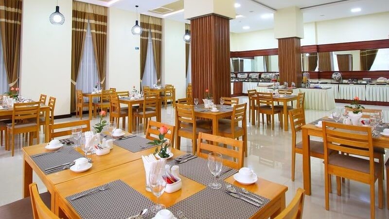 "A newly built hotel in the centre of town within close walking distance to the central palace moat. Best breakfast selection to date in Myanmar - yoghurt, nuts,fruit, pastries, fresh eggs, cereals & milk, plus the more usual Asian breakfast selections. A small pool. We stayed 3 nights and the only down side is the local temple starts up with loud music at 6:15am sharp each morning. Didn’t eat in the restaurant as the hotel is within easy walking distance to a number of good local restaurants. Bed very comfortable and modern, very quiet air con unit!"