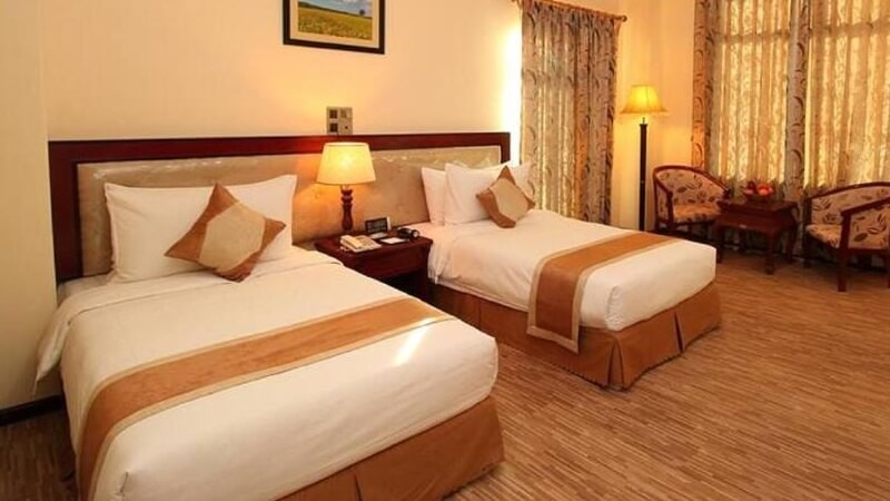 "We stayed at the Victoria Palace in Mandalay for 3 nights. It was centrally located within a long walk to the Royal Palace. The reception staff were very pleasant and check in was quick. The room was clean, spacious and amply furnished. The beds were comfortable. There was a desk and chair, two comfy occasional chairs, and a large wardrobe with plenty of space for clothes storage, a large flat screen TV, a large mirror, a night table, bedside reading lamps and a safe. There was a window on both sides of the room, a rarity. The bathroom was large as well, with an exceedingly comfortable bathtub. A number of toiletries were provided. The air conditioner worked well, with out freezing us, and was quite quiet. Though others had complained of noise, it was not an issue during our stay. What did bother me were the lights left on til 5 AM or so, in the passageway outside our room, with inadequate blackout curtains. The hotel had a surprisingly good gym. There was a treadmill and a bike, plenty of free weights, three excellent weight machines, a weight bench, and plenty of room. In addition there was an adjacent bathroom, clean towels and bottled water handy. We did not use the outdoor pool, though it looked inviting. Unusually, due to the small space the pool was tucked into, there was no room to lounge poolside. The included breakfasts were a treat. There was a wide variety of foods (yogurt, an omelette station, soup, cereal, breads, fruits, nuts, etc.) to choose from, sufficient even for a gluten free diet. We also had two dinners at the hotel and found the food delicious, the service attentive and the prices reasonable."